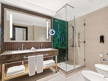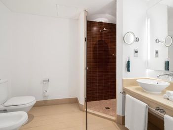 1. Огромная территория. Это плюс 2. Большой паркинг 3. Просторные номера с балконами 4. Компоновках ванной комнаты. Унитаз, гигиен душ, биде, душевая кабина, ванна, 2 раковины. Удобно