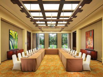 В отдельном двухэтажном здании MICE обустроены полностью оборудованные конференц- и банкетные залы общей площадьюболее 3 000 кв. м. Оба этажа конференц-здания соединены с открытыми лужайками для проведения мероприятий. В распоряжении гостей открытая лужайка на пляже с зоной​около 3 000 кв. м и морская лужайка около 300 кв. м, который подходит для проведения мероприятий на свежем воздухе и романтических свадеб.