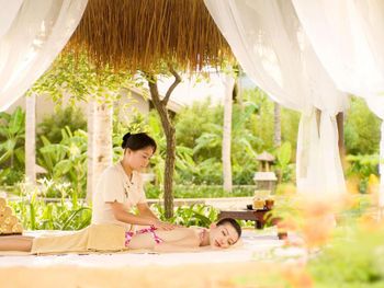 1).Спа, это не спа это просто 3 вида массажей :голова шея, потом 60 мин. массаж все тело и 90 мин. массаж все тело и все. Никаких процедур. Массаж делают так себе одной рукой одну сторону, другой рукой другую сторону не очень девушки приветливы, когда мы пришли у них никого не было и ощущение такое что мы нарушили их уютное ничего не делание. Такие красивые бассейны на территории спа как купальни стоят без воды, заросли. А ведь место красивое отдельное здание все утопает в зелени, красивые купальни, домики для массажа с душевыми комнатами, но зачем душевые если они делают только массаж, никаких обвертываний, пилингов вообще ничего. Большое разочарование СПА зона и совершенно не заинтересованные в посетителях сотрудницы. ( последние два фото это купальни заброшенные в спа зоне). 2). Шоу программа на ужине каждый день одинаковая, очень примитивные выступления и певцы слабые как любители в караоке баре. 3). Персонал вообще не знает английского, но переводчик в помощь. И еще продавцы на пляже навязчивы.