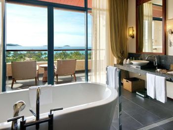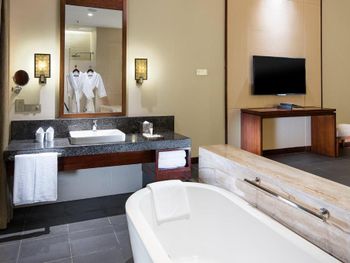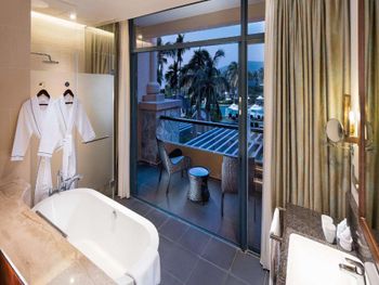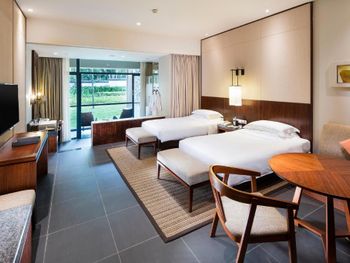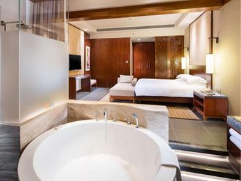 В распоряжении гостей отеля 492 номера, включая люксы и виллы. С просторных балконов номеров открывается восхитительный вид на море или тропические сады. Гости могут посетить спа-центр площадьюприблизительно 6 780 кв. м с 8 спа-виллами, фитнес-центром с новым оборудованием, отдельной стойкой регистрации, зоной отдыха, паровой баней, сауной, чайным павильоном и салоном красоты. Гостям предлагают различные виды массажа.