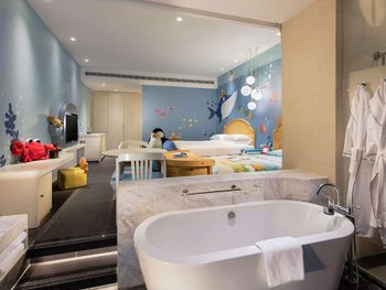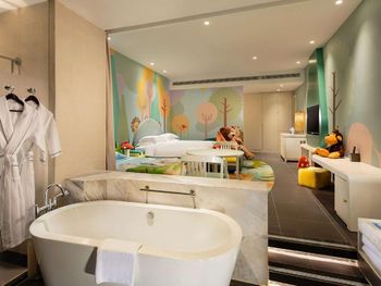 В отеле доступны семейные номера и люксы, оформленные в синих тонах океанического мира и зеленых оттенках сказочного леса. В числе удобств специальные ванные комнаты для детей и игровые зоны, позволяющие детям окунуться в удивительное пространство анимации и бескрайний мир воображения. Гости, путешествующие с детьми, получат удовольствие от семейного отдыха как в помещении, так и на открытом воздухе.