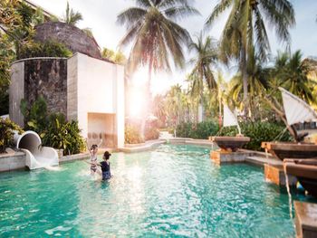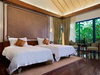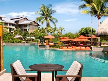 Еда только китайская , плохой завтрак, европейские блюда на Китайский лад Повсюду ступеньки , с маленьким ребёнком в коляске сущий ад перемещаться по территории! Номера с выходом к бассейну никто не контролирует, китайцы с прочих номеров все бегут купаться , через кусты и прочими доступными методами ,прям перед окном из-за горки по соседству ! Частный номера с прямым доступом в отдельный бассейн теряет смысл уединения