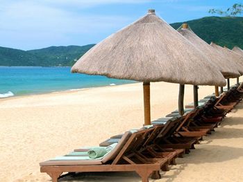 Очень зеленая, ухоженная территория. Свой пляж с шезлонгами и зонтами, полотенце выдают на пляже. Пляж песок, но вход не очень удобный сразу яма, но это уже наверное из за волн. Просторные номера, уютные, удобный матрас. Завтрак и ужин нормальные выбор большой, можно найти что покушать.
