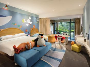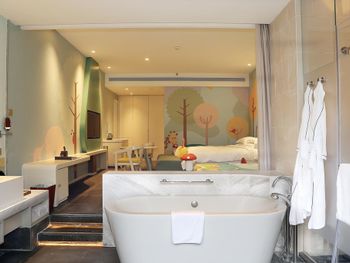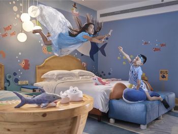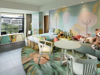 The hotel has launched family rooms and suites in the ocean world blue and fairy tale forest green colors, equipped with children\'s special bathroom areas and game areas, allowing children to live in a wonderful animation space and swim in the infinite imagination space, allowing those traveling with children to Families can experience family happiness both indoors and outdoors!