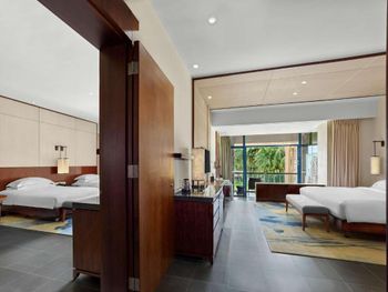Мы работаем над переводом этого описания на ваш язык. Приносим извинения за неудобства.Hilton Sanya Yalong Bay Resort & Spa is located in the magnificent Yalong Bay. The hotel is surrounded by lush tropical gardens and adjacent to a stretch of crystal-clear white natural beach. It has complete facilities and equipment, including multiple outdoor swimming pools totaling approximately 3,800 square meters, a fitness center, a spa center, and an indoor and outdoor children\'s playground covering an area of ​​approximately 1,500 square meters. 6 restaurants and bars. The hotel is about a 30-minute drive from downtown Sanya and Sanya Phoenix International Airport. The flight from Hong Kong to Sanya takes about 1 and a half hours, while the flight from Shanghai to Sanya takes about 3 hours.