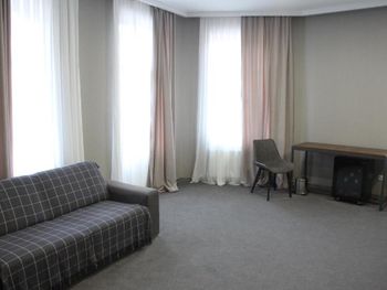 Оплата проживания и мини бара возможна только наличными, что, конечно, совсем не удобно и не современно. Номер уже тоже заметно обветшал, ковролин на полу грязноват и с пятнами, смыв в туалете постоянно заедает и вода просто льется, не собирается в баке, смыв в душевой тоже очень плохо работает, стоишь в луже по щиколотку постоянно, это не очень приятно. Но самое странное было то, что уборки номера во время проживания не было вообще, даже мусор не забирали, и при заезде в ванной вообще отсутствовала туалетная бумага... На рецепции персонал почти никогда не бывает, поэтому текущие вопросы типа бумаги решить было крайне сложно.