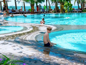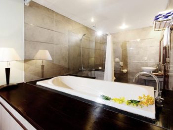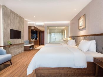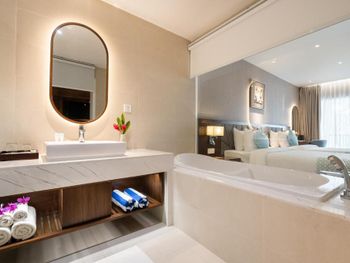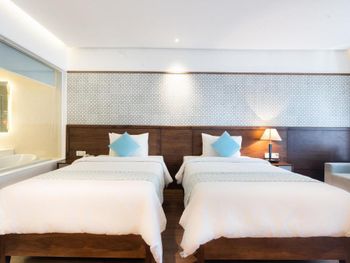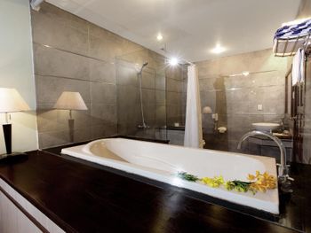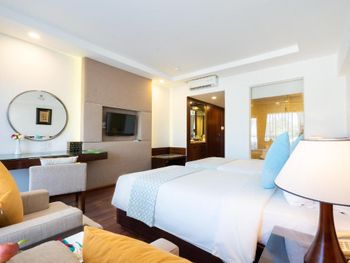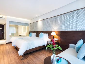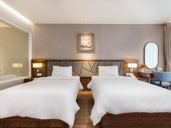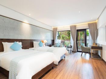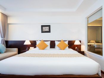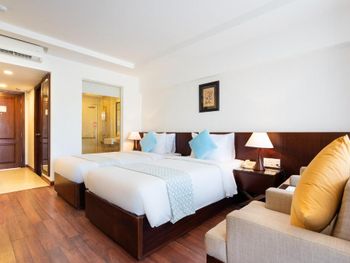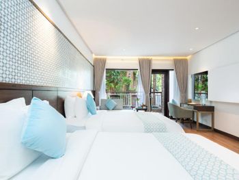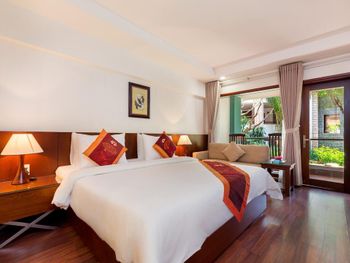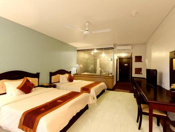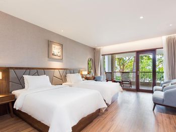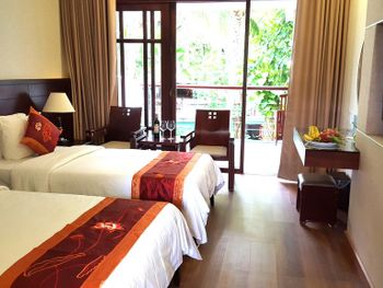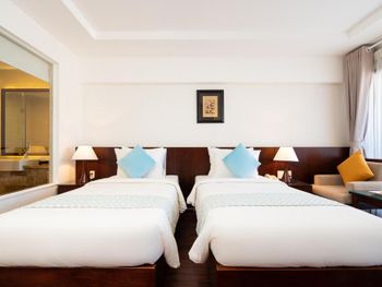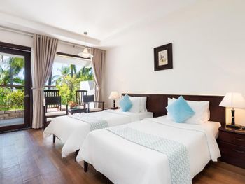 Проживали в отеле пару дней. Номер был семейный. Две отдельные комнаты с двуспальными кроватями. Отель утопает в зелени. Ощущение что находишься в ботаническом саду,каждый уголок и тропинку хочется сфотографировать,в водоеме живут огромные карпы,размером 1,5 метра))),их можно кормить,это тоже своего рода развлечение.Все чисто и аккуратно. Персонал очень приветливый. Пляж всегда убирают,лежаков достаточно,полотенца пляжные выдают каждый день.Много корейцев и китайцев,они в основном атакуют бассейн,русских мало,поэтому весь пляж в их расположении.На завтраках всего достаточно:суп-фо бо,омлеты,яичница,мясные нарезки,сосиски,овощные нарезки.Очень понравился йогур в стеклянных баночках.В номере после уборки пахнет,свежестью и лаймом.Сантехника исправна,горячая вода всегда есть.По балконам бегают белочки))) Рядом с отелем есть много кафе и магазинов. На против отеля можно взять экскурсии.