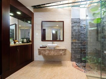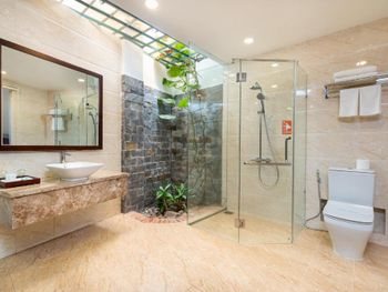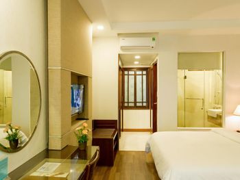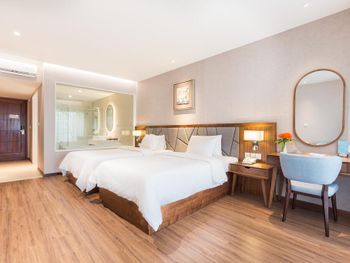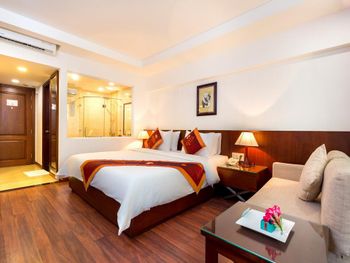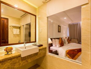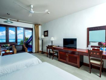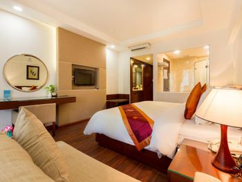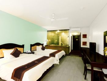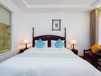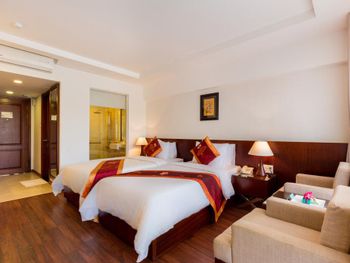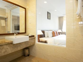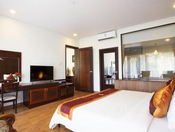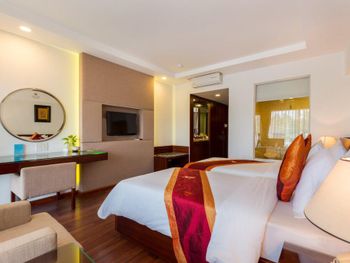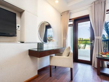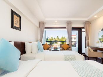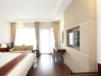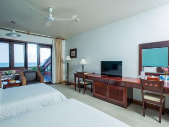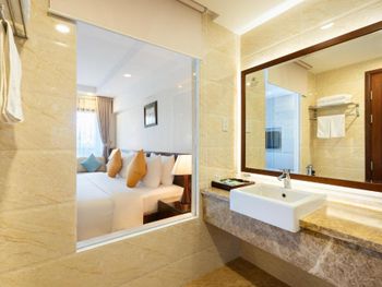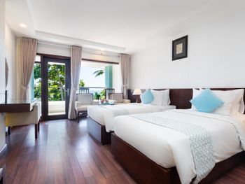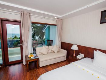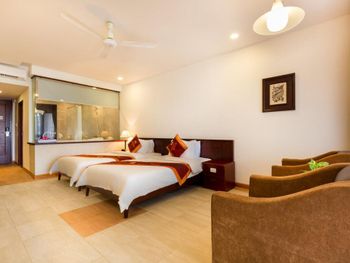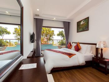 Я бронировал большой номер с видом на море. У них такого нет. То, что мне предложили - это большой номер, но море видно, если залезть на шкаф. Отель старый, это видно по мебели и по состоянию стен. Внутри номера живут муравьи. И совсем нет интернета. За интернетом - к ресепшену, там есть и хороший. Завтраки - за 2 недели рыба была 2 раза. Морепродуктов нет, хотя у моря. Персонал практически не говорит на английском. Я общался на вьетнамском. С воспитанием тоже проблемы - приходишь с вопросом на ресепшен, а девица с кем-то по телефону болтает. И ты ей никто. Совсем. В общем это 3 звезды.