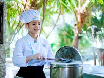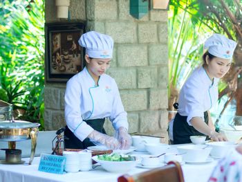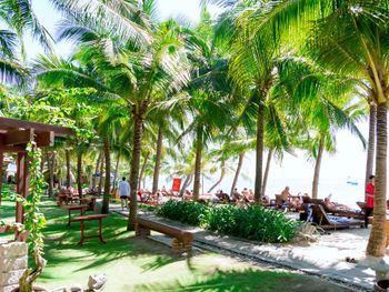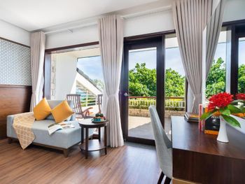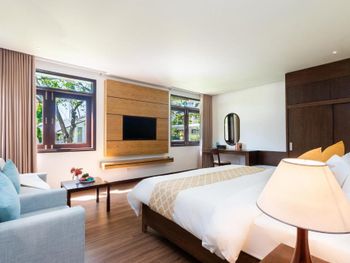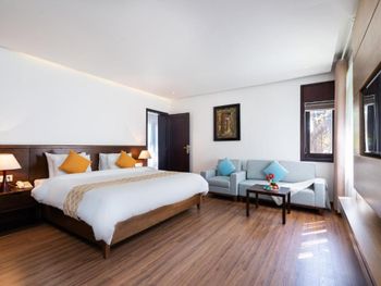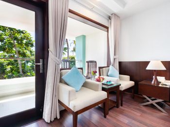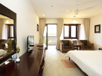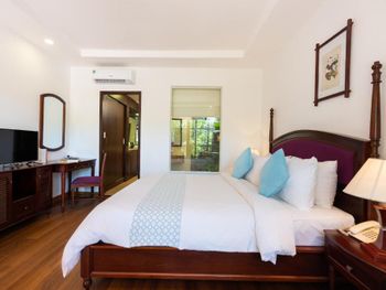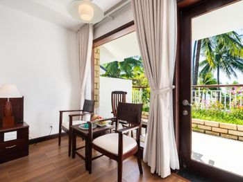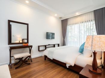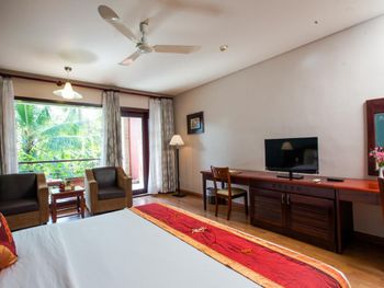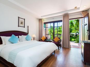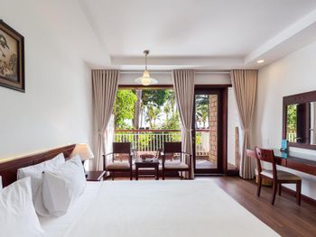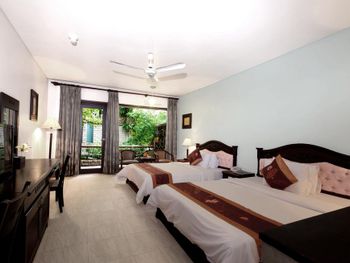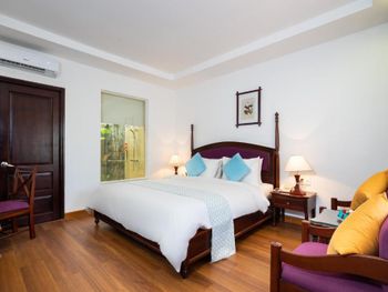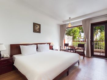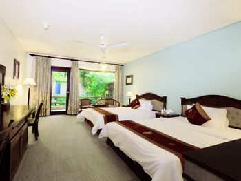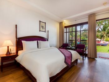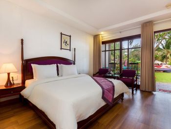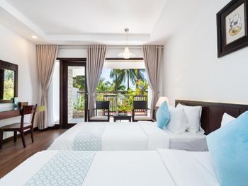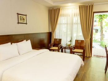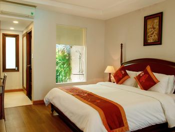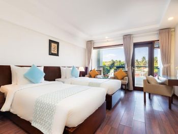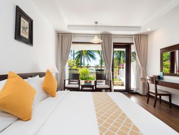 Отличный отель во вьетнамском стиле! Замечательная территория - очень зелёная, ухоженная, продуманная до мелочей. Отличные номера - просторные, достаточно свежий ремонт, в номере есть все необходимое: холодильник, телевизор, фен, чайник, халат и прочие гостиничные мелочи. Завтраки отличные, есть даже отдельный зал с национальной кухней, которую точно стоит попробовать. Пляж также хорош, песчаный, расположен в пальмовой роще, где всегда найдётся тень, в принципе много лежаков, но наиболее "удачные" стоит занимать пораньше, причём этим грешат не только русские туристы, но и "буржуи". Море грязноватое, но это особенности Муйне, а не отеля... Персонал очень отзывчивый и дружелюбный, а ещё нам подарили два сеанса массажа , что также нас очень порадовало)) Единственный минус у отеля(для кого-то может быть плюс) - он находится на самом краю курорта, следовательно ужинать приходилось ездить, в так называемый, центр, еда в кафешках напротив отеля нам показалась нес'едобной и дорогой (исключение составляет "фобошница" напротив - кафе где готовят только суп Фо, в ней всегда едят местные, да и нам супчик очень понравился) . Как доп. бонус - совсем рядом местный рынок с копеечными фруктами, недорогими морепродуктами, зеленью и тд. Если не пугают эти мелкие нюансы, то отель однозначно рекомендую!!