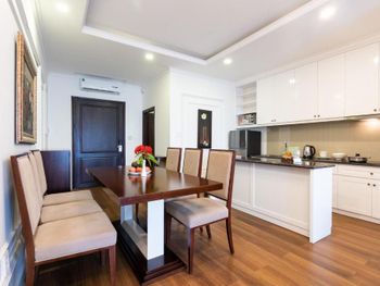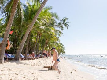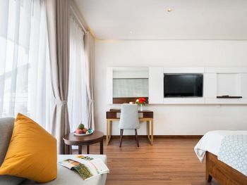 Отличный отель, расположенный в тихой зоне курта. Территория очень зеленая, ухоженная с водопадиками, речками с рыбками (большими и маленькими), разнообразными тропическими растениями. На первой береговой линии с отличным широким и чистым пляжем. На пляже бар с прекрасными коктейлями. Море без больших волн для нас стало приятной неожиданностью, т.к. в предыдущий раз купались без комфорта. А сейчас просто наслаждались водой. Завтраки хорошие. Без излишеств. Но голодными никогда не были. Фрукты каждый день вкусные и разнообразные. Бассейн большой, вечером подсвечивается и выглядит в окружении подсвеченных пальм очень красиво, купаться вечером одно удовольствие, разрешено до 22-00. До местного рынка идти мин 10-15, В 1 км в ту и другую сторону от отеля есть замечательные фуд-корты с разнообразной кухней. Напротив отеля тоже неплохое кафе. А в центр мы ходили пешком или ездили на такси 4,5 км. На мой день рождения отель сделал подарок в виде очень красивого тортика, что меня привело в умиление и восторг. Персонал очень улыбчивый и отзывчивый. Спальный автобус в Хошимин заказали прямо не рецепции. Рекомендую! В следующий раз- вернусь сюда.
