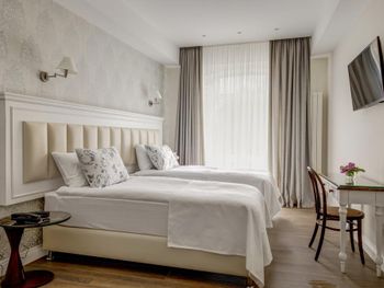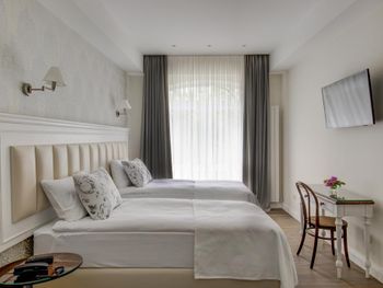 Очень понравился отель - красивый и снаружи, и внутри, хорошие номера, красиво оформленные, просторная ванная. Наш поезд был в 8 утра, и мы не успевали на завтрак. Для нас завтрак приготовили специально раньше, это было очень приятно! Причем завтрак просто отличный - все есть, все свежее и вкусное. К сожалению, останавливались всего на одну ночь. Расположен отель очень удобно - в тихом зеленом месте, при этом в 5-7 минутах пешком от ресторанов (исторический центр). Очень рекомендую!