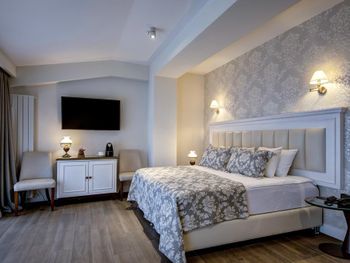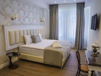 Номер хороший, чистый! Кровать удобная, постельное, правда, уже с катышками. В номере есть халаты! Хорошие завтраки! Местоположение нормальное. Так как поездка была на день рождения, предварительно обратились с просьбой дать видовой номер, на что нам ответили, что все номера с прекрасным видом. При заселении ждало полное разочарование((, номер 23, с видом на дорогу и дерево((. Если будет кто-то курить у входа в гостиницу, будьте готовы дышать дымом(( Хорошо, что рано уходили на экскурсии и поздно возвращались!