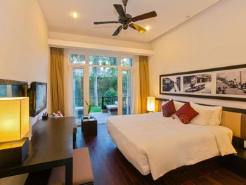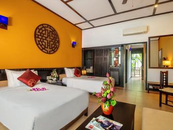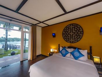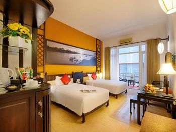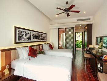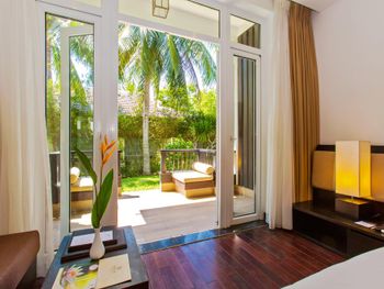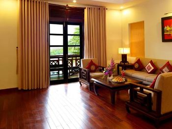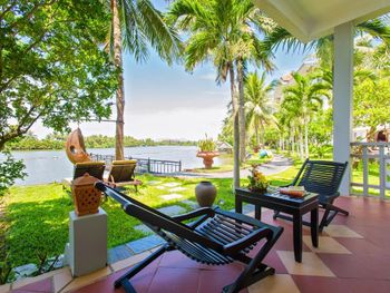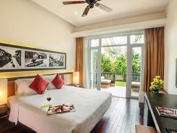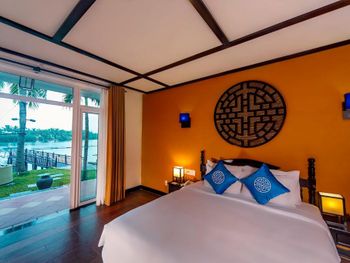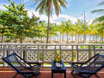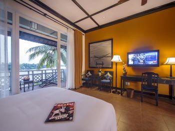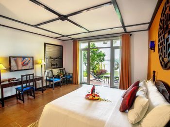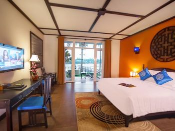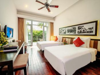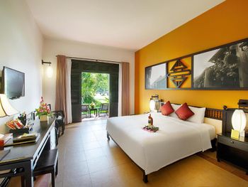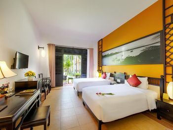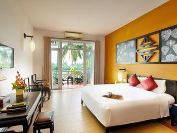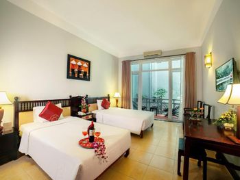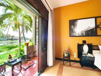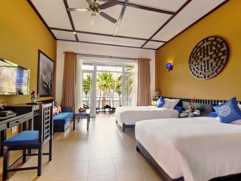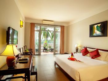 В номерах курортного отеля Hoi An имеются собственные балконы с видом на сад, реку или море. В числе прочих удобств — телевизор, сейф и принадлежности для чая/кофе.