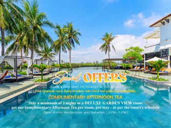 Курортный отель Hoi An Beach расположен в 45 минутах езды от международного аэропорта Дананга и в 4 км от центра города Хойана. Трансфер от/до аэропорта предоставляется за дополнительную плату.