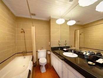 Оочень уставшая ванная комната, очень. В ресторане иногда очень медленное обслуживание