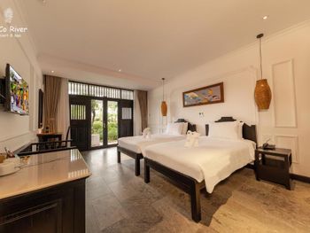 It takes 15 minutes by the hotel’s shuttle bus or 30 minutes by shuttle boat to Hoi An Town. Coco River Resort & Spa is 35 km from Danang International Airport.