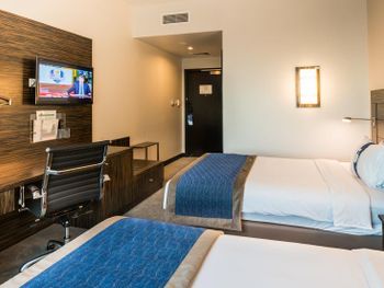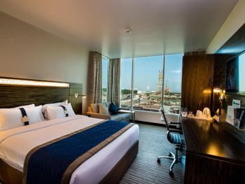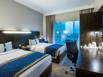 В номерах отеля Holiday Inn Express Dubai, оформленных в песочно-коричневых тонах, кровати застелены роскошным постельным бельем. В гостиной зоне можно посмотреть телевизор с каналами на нескольких языках, разместившись на диване с удобной спинкой.