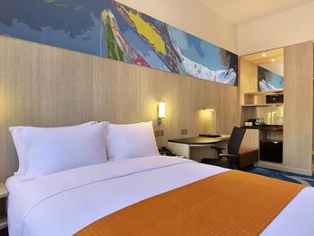 Сначала мы хотели поехать в Ibis, так как были там 1 год назад. Но там очень сильно хлопали дверями и мы постоянно просыпались. В этот раз мы решили рискнуть и поехать к вам в Holiday Inn Express. Это был один из самых лучших отелей🤩☺️, в которых мы останавливались. А мы за 2 года беспрерывных путешествий побывали много где. Нам дали очень хороший этаж и номер. Спасибо администрации, они очень стараются, вам нужно поднять зарплату 🙏😁