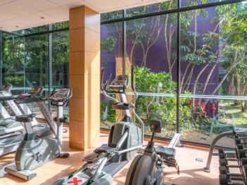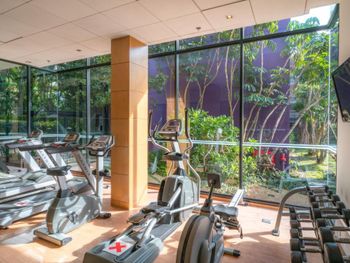 Спортзал рассчитан на кардио тренировки. Нет блинов, грифа,скамьи для пресса.