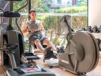 плохая шумоизоляция , сильно слышен шум с улицы ночью , в аптеке рядом с отелем купили беруши , чтобы спать , маловато места у бассейна , сложно найти свободный лежак , староватые тренажёры