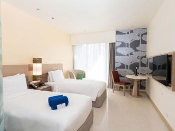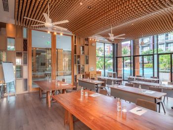 не надейтесь на хорошие завтраки в этом отеле или на то, что на завтраках вам хватит место в помещении с кондиционером: очень много народу, очень мало разнообразия в еде, яйца разных видов готовят отдельно на улице, а не в помещении, а выходить в духоту не очень хочется. Мы попробовали выбраться на завтрак лишь один раз, поняли, что он совсем плохой и ходили в кафе напротив отеля - beach bites, чего и всем советую. НЕ ходите в кафе, которое расположено на территории отеля (MOOD) - там не умеют готовить совсем. Наш номер был на 4 этаже, слышимость от соседнего караоке дикая, слышны все слова песен, которые поют. Так что если спите чутко - с собой обязательно нужны беруши.
