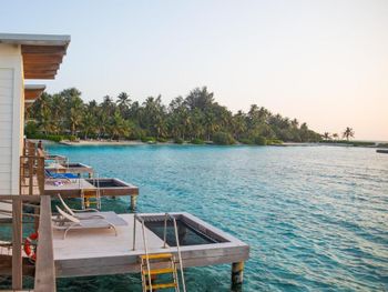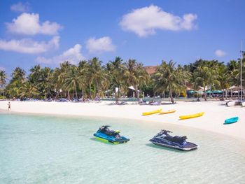 Относительно близко к аэропорту, около 45-50 минут на катере. Очень приветливый персонал. Еда очень разнообразная и вкусная, есть как европейская, так и индийская и локальная. Большой и красивый бассейн, несколько мест для пляжного купания. Лежаков всегда всем хватало, по всему острову висят гамаки. Убранная и ухоженная территория, богатая тропической растительностью. Отличный спортзал с качественным инвентарем, можно гулять по всему острову как по многочисленным дорожкам, так и вдоль всего берега, на круг около 1.5 км, что немаловажно. Есть даже свой малюсенький рифик для снорклинга. В целом все пребывание было комфортным даже несмотря на сильный ветер и частые дожди. Понравилась площадка для йоги, но если хотите самостоятельно, то возьмите с собой свой коврик. До более или менее нормального рифа для снорклинга около 15 минут на катере, большой и красивый риф, стоит около 50 баксов с человека, но по времени всего около часа-полутора максимум вместе с дорогой. Много серферов кому интересно, отличная прибойная волна. Пляжная зона отличная только в районе бассейна. Не забудьте коралловички на всякий случай
