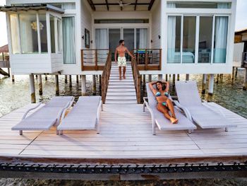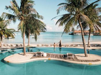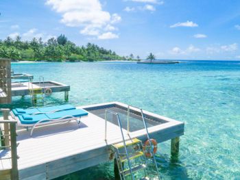 Самый огромный и наверно единственный плюс, это менеджер Ольга, которая сглаживает все углы и решает все вопросы. Локалы очень сильно тормозят, от ресепшена до официантов. Цены: Коктейли 20$ в среднем. Майтай вкуснее не пробовал нигде. Вино 70-110$ причем за 110$ не рассчитывайте на полупремиальное качество, это будет бутылка стоимостью 1200₽ в России. Пиво 0,33 - 8-11$ Сигареты - внимание) 27$. Еда- супы, салаты, пасты, пицы - 20-28$ Порции очень большие, еда вкусная. Гриль - отвратительный. Несколько раз приносили сильно подгорелый. Номера: Пляжные виллы с хорошим видом и красивой территорией. 83-125 одноэтажные. 126-160 двухэтажные видовые. Остальные либо в центре острова, либо с видом на замороженную стройку. Виллы на воде брать однозначно с видом на океан. Риф. Очень маленький, но по факту живности столько же, сколько на рифе, на который возят в 8 утра на пол часа. Находится он сразу слева от входа на водные виллы. Так же много интересных рыб, акул и скатов под самими виллами. Сама территория красивая. Много мест для купания и фото. Шикарный видовой бассейн. Очень внимательно следят за безопасностью. Для детей очень комфортный отель. Очень важный момент. Когда бронируете даты более чем на неделю, берите начиная с вс или пн, так как в пт-сб приезжает очень много людей с Шри и Индии.