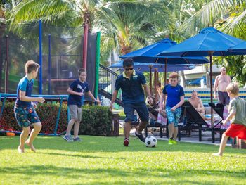 Большое спасибо, что заселили пораньше! После долгого перелёта это было просто спасением. Отель очень подходит для детей, на территории водные горки и детский бассейн. На улице много различных кафешек.