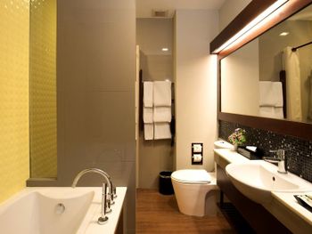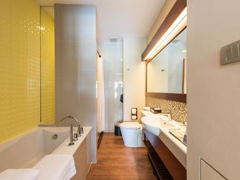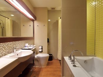 Отель не соответствует представлениям о сети, полученным от проживания в других странах и городах. Душевая, разделённая шторкой, недостающей до пола, от ванной комнаты-вся вода на полу. Застиранные полотенца серого цвета. Жесткий матрац, с местами выпирающими пружинами, пыль на полке над кофейной машиной и чайными принадлежностями за все время нашего пребывания осталась нетронутой...
