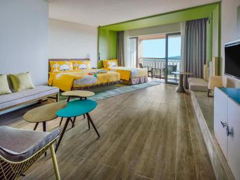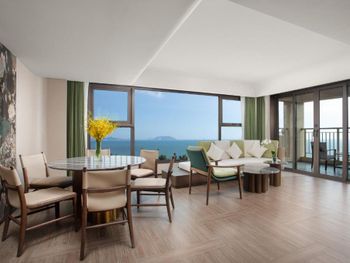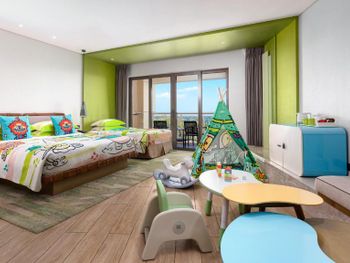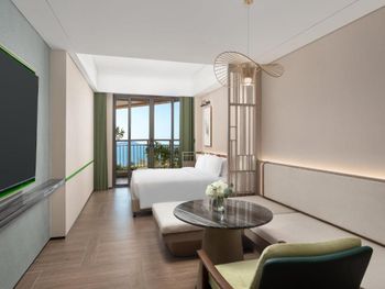 Отличный отель, отдыхали 3 мя семьями с детьми, отель очень понравился, дали номер люкс с большой гостинной и тремя спальнями, у нас был завтрак и ужин, питание просто супер, в любой ситуации помогала русскоговорящая девочка Renata, огромное спасибо ей за помощь абсолютно в любом вопросе. Очень удобно было общаться с ней через WeChat. Море через дорогу чистенькое с крупным и мягким песочком, лежаков нет, но в отеле можно брать пляжные полотенца в неограниченном кол-ве, так что можно одно постелить другое оставить вытираться. Очень много развлечений для детей и причем бесплатно. Так же хочется отметить то что бассейн работает до 22-30 ,после ужина можно пойти поплавать. С удовольствием вернемся еще раз.