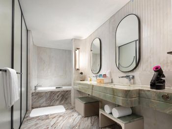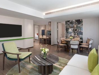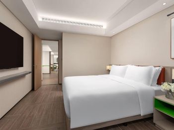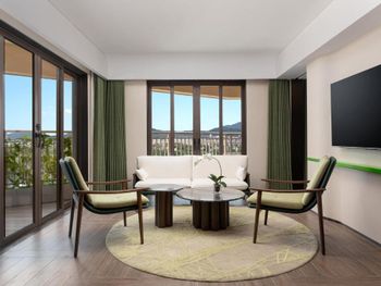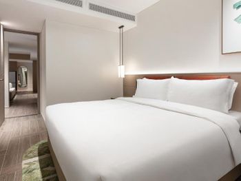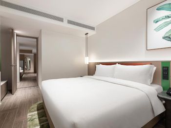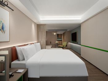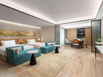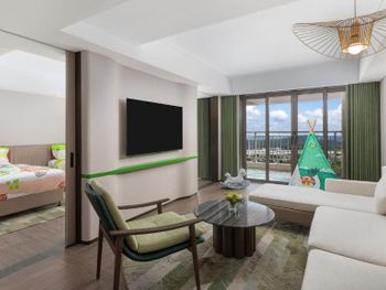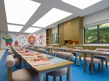 полностью апатичный персонал(кроме сотрудницы выше): при регистрации Petr было настолько все равно, что нам молча выдали ключи без адекватной информации о базовых услугах и их времени в отеле. спросили про трансфер в аэропорт и вместо адекватного "давайте поможем вызвать такси", ответ "нет трансфера", и обратно девочка уткнулась в телефон. в один из завтраков нас не хотели пускать в главный ресторан(2 взрослых+2 ребенка), отправляя в соседнюю столовую. те с детьми надо было бегать туда-сюда за едой. но сразу пустили и нашли место после того как сказал что буду ждать и стоять рядом с ними. отдельный минус это система ужинов в ресторанах: На букинге выбирая полупансион вы покупаете ужин в "столовой": а рядом за 308 юаней на семью продается вход на нормальный шведский стол. В итоге в столовой так ни разу и не были, а отель мог бы эту информацию донести на букинге, или же засчитывать оплату за "столовую" в счет основного ресторана. на любом ужине нет обычной воды и чая в общем доступе