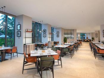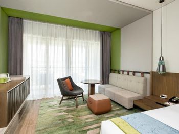 Завтрак отличный. Большой выбор блюд, всё свежее. Есть бесплатная прачечная, много бесплатных аттракционов для детей, небольшой зоопарк и даже картинг. Отель далеко от центра, но близко к аэропорту. Самолёты при этом не мешают спать, звукоизоляция хорошая. Такси дешёвое, если пользоваться DiDi, поэтому ездить в центр города, парки и рестораны не напрягает.