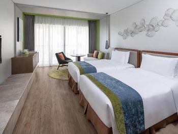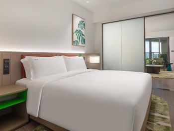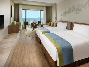 Номера курортного отеля Holiday Inn Sanya Bay оформлены в современном стиле. В каждом номере имеется телевизор с плоским экраном, холодильник, а также прилегающая ванная комната с душем с водой из термальных источников и туалетно-косметическими принадлежностями премиум класса. Круглосуточно осуществляется доставка еды и напитков в номер.