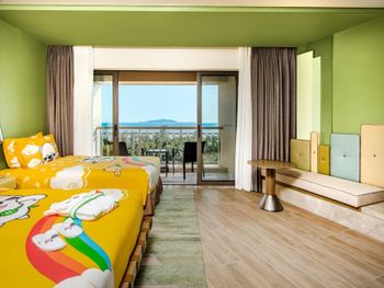Отличный номер, бассейн, разнообразный завтрак и удобный выход к морю. В отеле множество развлечений для детей, скучать не придется - это самый главный и весомый плюс. Предоставляются принадлежности для плавания, ведерки, лопатки и все многое другое для досуга детей.. В самих номерах есть все для удобного проживания. Номера свежие и приятные, жить комфортно..