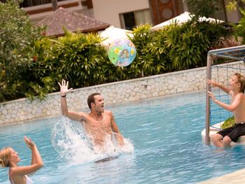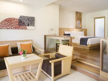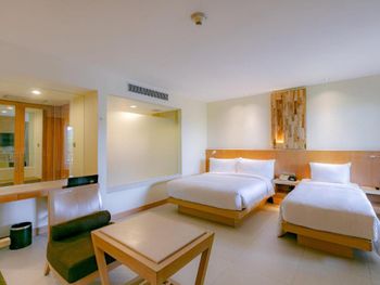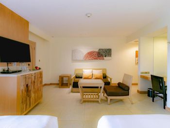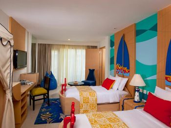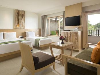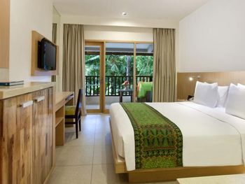 Номера курортного отеля Baruna Holiday Inn обставлены красивой мебелью из светлого дерева и украшены элементами в балийском стиле. В распоряжении гостей собственный балкон, кондиционер, телевизор с плоским 32-дюймовым экраном, холодильник, сейф и DVD-плеер.