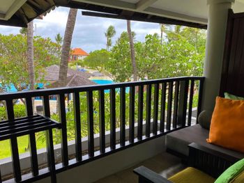 Номер большой, кровати удобные, постельное белье чистое, есть выбор подушек. Терраса была чудесная, с качелями и шезлонгами. По запросу нам принесли фумигатор. Персонал в целом очень отзывчивый и всегда готов помочь. По вечерам играет живая музыка. Завтрак шведский стол, кофе как заваренный так и зерновой из кофемашины. Булки/вафли/омлеты/мюсли, много азиатской еды и есть индийская. Если берете ужины, будьте готовы, что это не шведский стол. Принесут меню из 8 блюд, реально европейцу понравится два максимум и так все дни. Мы там жили 10 дней... Коктейли в баре супер, с 16 до 17 Happy hour, когда два по цене одного. Отдельно в отеле есть кафе, в котором всегда есть снеки, кофе, мороженое, сладкая вата и т.п. Детский клуб прекрасный и бесплатный. Есть платные активности в нем, но при желании в них можно не участвовать. Детям очень нравилось там. На территории есть детская площадка. Спортзал супер, есть полотенца, кулер с водой, кондиционер и все что нужно для тренировки. Детский бассейн с тентом, но без горки или лейки. Просто неглубокий и это все, что там детского.
