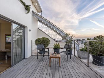 Все номера оформлены в элегантном стиле и обставлены мебелью с темными цветовыми акцентами. В номерах положен деревянный пол. В каждом номере есть гостиная зона с телевизором с плоским экраном и спутниковыми каналами, креслом и хорошо укомплектованным мини-баром. В числе удобств рабочий стол и гладильные принадлежности.
