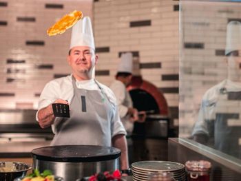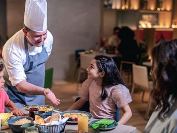 Гостям подают завтрак «шведский стол», континентальный завтрак или вегетарианский завтрак.
