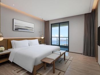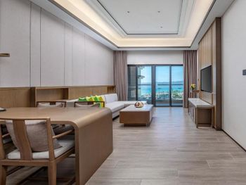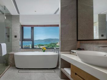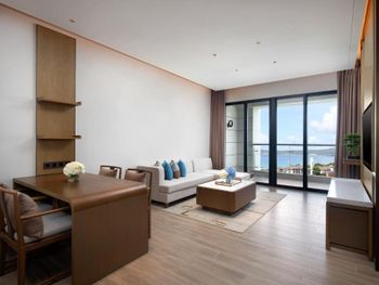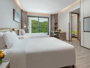Отель по многим параметрам достоин 4 звёзд, и в целом сложилось хорошее впечатление, но в Китае видимо есть традиция, добавлять в бочку с мёдом ложечку дёгтя) А потому и начну свой отзыв с того что нам не понравилось: 1) Мы забронировали номер по одной цене, а на ресепшене нам продали его дороже, на 20%) 2) Заселили нас в номер с видом на военно-морскую базу, а учитывая, что объект режимный - балкон наш был закрыт металическими жалюзи, через которые не проходит солнечный свет) От этого в номере 2820 было очень сыро. Мы попросили осушитель воздуха и ушли на море, пришли через 4 часа - осушителя нет. Попросили ещё раз и ушли ужинать в центр Ялонгбэй. Пришли ночью - осушителя нет. Попросили в 3й раза, но нам его так и не принесли. В итоге плохо спалось и на утро мы потребовали заменить номер. В 12 часов следующего дня, когда уже был решен вопрос о переселении в другой номер, нам предоставили осушитель воздуха) Спасибо нашему менеджеру Rose, который пришел на работу утром 12 апреля и решил вопрос о нашем переселении в номер 2422 и предоставил нам осушитель. Там не было жалюзи, но всё равно чем то странно пахло. Сложилось впечатление что в отеле нет нормальной вентиляции! 3) В отеле плохой спортивный зал - нет турника, мало тренажеров, нет окон и так же проблемы с вентиляцией, в итоге тренировался на пляже, благо там есть металлические конструкции, которые заменили перекладину) 4) Туалеты не оборудованы гигиеническим душем. 5) Прачечная для такого большого отеля очень маленькая, всего 3 стиральных машины и з сушилки - в очереди можно сидеть 1-2 часа! 6) Персонал не смог подключить телефон к телевизору для дублирования экрана, причем ни Айфон ни Самсунг, пришлось смотреть каналы на Китайском) Теперь о хорошем: 1) Просторные номера с лоджией, кухней, холодильником, и большими двуспальными кроватями! 2) Хорошие матрацы, одеяла, подушки и конечно же постельное бельё! 3) Хорошие халаты, тапочки, есть даже сланцы для пляжа!