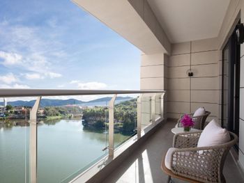 Расположение, чистота, размер номера, вид с балкона. Ухоженная территория и возможность использовать инфраструктуру Hualuxe рядом.