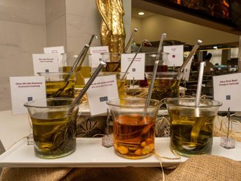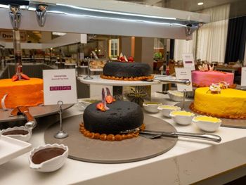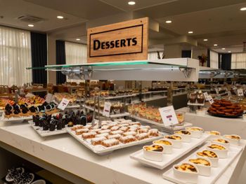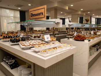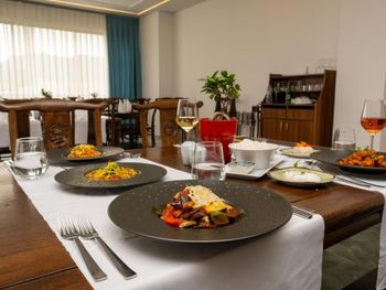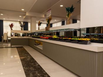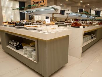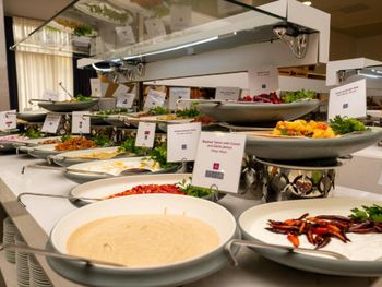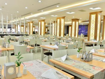 Гостям подают завтрак «шведский стол», вегетарианский завтрак или халяльный завтрак. При Holiday Village Türkiye работает ресторан, где подают блюда британской кухни, блюда греческой кухни и блюда итальянской кухни. Гости могут попросить приготовить безлактозные, халяльные и безглютеновые блюда.