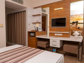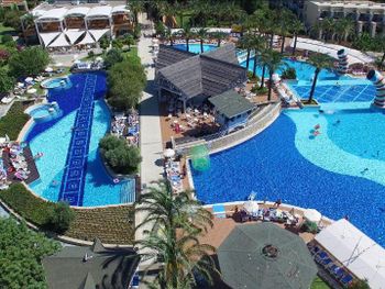Близость к аэропорту-главный плюс этого отеля. Много зелени и низкая цена. Хорошие матрасы и современные номера, зонирование в номерах удобно с детьми. Достойная кухня на ужин и большой выбор вкусного европейского сладкого, не самое типичное для Турции.