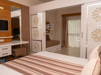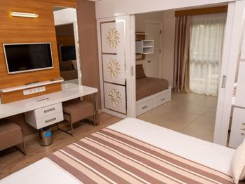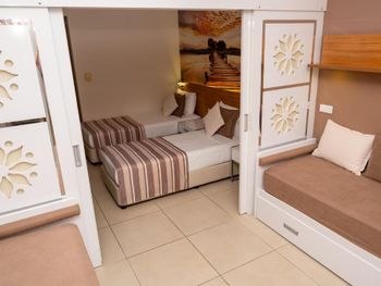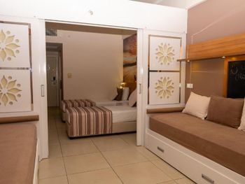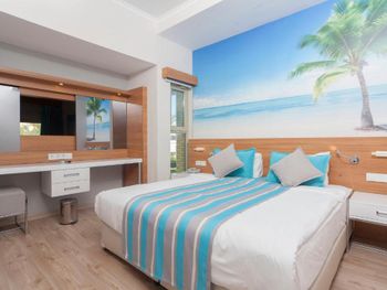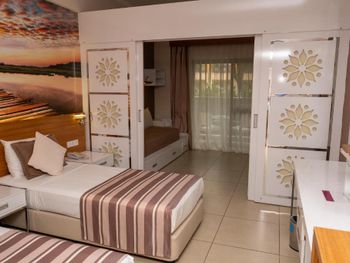 Отель рассчитан, в основном, на гостей из Великобритании. По этой причине вся развлекательная программа на английском языке. Семьям с детьми, плохо владеющим английским, будет тяжело. Да и самим детям на английских шоу откровенно скучно. Кроме того, за пределами отеля делать особо нечего - кругом стройки и запустение. На территории соседних отелей не пускают, поэтому весь отдых ограничивается отелем, пляжем и прилегающей территорией. При большом сроке проживания становится скучно, поскольку даже негде особо прогуляться. Еще из минусов - не всегда без просьбы убирают номер. И да, ряд гостей ведет себя шумно в номерах, но администрация отеля не предпринимает никаких мер против этого.