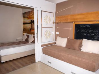 Большинство постояльцев -крайне неопрятные, будто попал в лагерь для толстых, не заботящихся о себе людей. Отель старый, но реновированные номера-в них комфортно. Жутко старые матрасы на лежаках, британцы едят прям на них, не утруждаясь даже взять полотенце. Процветает воровство, за 2ночи в отеле у нас чуть не утащили детские кроксы: какой-то бритиш поднял их, лежащих в метре от лежака в направлении детского бассейна со словами «nice shoes” и положил к себе в коляску на наших глазах. А накануне другой персонаж стащил надувной матрас у своей соотечественницы. Вообщем было крайне странно, учитывая, что отель стоит не 5 копеек и имеет 4 звезды. Коктейли и напитки-отдельная история, они к слову, бесплатны до 00:00, позже-за деньги. Мороженное бесплатное -один сахар. Вообщем русскому человеку, избалованному хорошим all inclusive будет все это непонятно и не комфортно