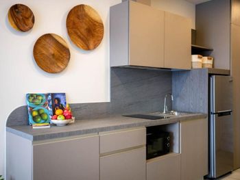 Сам комплекс великолепный- современный, большой, полон зелени, с большим бассейном на крыше, хорошим фитнес залом. Бесплатная парковка для машины. Уборка каждый день, мы даже сдвигали ее несколько раз. Персонал - отдельное спасибо Tuang за помощь в решении проблемы с номером по приезду. Мы бронировали проживание еще в июле, на троих, сразу просили номер с видом не на стройку, уточняли размер дивана для ребенка. В итоге, по приезду - нам предоставили номер с видом на стройку (хотя сейчас там довольно тихо, она не беспокоит) и диван оказался меньше заявленного, необходимо было оплачивать доп место ребенка, что стоит довольно дорого. Tuang пошла нам на встречу, за небольшую дополнительную плату нам поменяли номер с окнами на сад, с большим диваном, с отдельной спальней. Это было потрясающе, тк НГ хотелось отметить в комфорте. Общение с персоналом можно вести в вацап, оперативно решали все проблемы и просьбы. Обязательно приедем в конце года на месяц, будем советовать данное кондо друзьям.