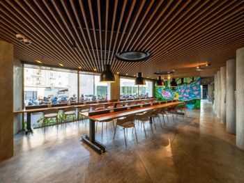 Завтрак шведский стол, не сильно разнообразный, также предлагали выбрать по меню, в целом нормально для нескольких дней проживания, но не дольше. Классный запах шампуня, геля для душа. Не было стиральной машинки, если снимать такую студию на долгосрок,то не очень удобно, мало шкафов и полок. Классный бассейн на крыше. Если Co working и норм кафешка на 1ом этаже. Прикольное приложение при заселении, но картинки не грузились частично.