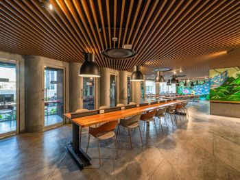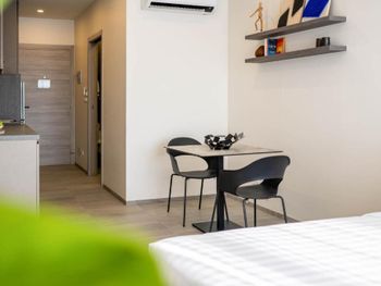 Завтрак шведский стол, не сильно разнообразный, также предлагали выбрать по меню, в целом нормально для нескольких дней проживания, но не дольше. Классный запах шампуня, геля для душа. Не было стиральной машинки, если снимать такую студию на долгосрок,то не очень удобно, мало шкафов и полок. Классный бассейн на крыше. Если Co working и норм кафешка на 1ом этаже. Прикольное приложение при заселении, но картинки не грузились частично.