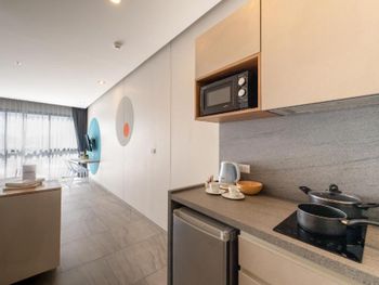 Супер кондо и отель. Это крутое сочетание. То есть у них круглосуточный сервис и лобби. А по цене такой же как обычный кондо. Так же хочу отметить бассейн, он шикарен, завтраки улетные и дешевые, а персонал в он Праге стал родным за все время) все советую! Отличное место!