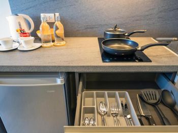 Новый современный отель, с хорошим дизайном, есть все, посуда, даже открывашка для вина и бокалы, бассейн на крыше, спортзал, ресторан (10% скидка для проживающих), есть большая парковка напротив входа в гостиниц