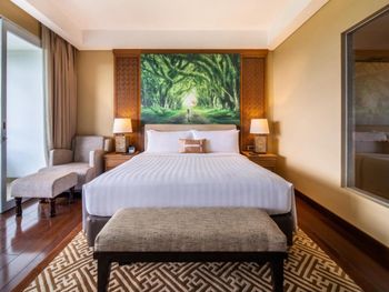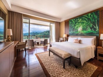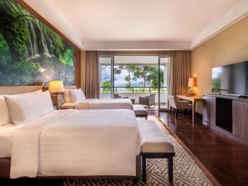 Это люксор ребята и очень жаль. что тут максимум на 20 слов отзывы, мы распишем для вас нормально) Эпический отель, 100/10, советуем 1000%, если рассматриваете этот район. Кто не любит читать длинные отзывы, резюме на 1 строчку: топовый отель. Минусов нет, вообще. А теперь подробно: Основной огромный плюс отеля - это персонал и сервис, он реально тут на 5 звезд. За несколько дней до заезда нам написали в вотсап, спрашивали, есть ли вопросы по бронированию. Можно задать любые вопросы до заезда и во время пребывания, отвечают быстро. Мы ехали из аэропорта, рейс поздний из Шеньчженя был, прилетели после полуночи, примерно 1 час 15 минут ехали на грабе из аэропорта, приехали в 02:30 ночи. Нас единственных ждал сотрудник отеля, быстро зарегистрировал и он же тащил наши огромные чемоданы до номера) У отеля большая территория, на самом верху, на уровне дороги находятся: парковка, ресепшн и ресторан, а далее уже вниз под наклоном идет территория отеля, наш корпус был внизу, есть также пара отдельно стоящих вилл и далее идут еще рисовые террасы. Территория большая, зеленая, ухоженная, очень красивая. Номер у нас был стандартный, компактный, с большой кроватью и супер видом на террасы. Есть бассейн (мы не купались), есть расписание активностей по дням типа игр, обучения местному языку, каких-то мини-лекций и тд. У нас было всего 2 полных дня, в этом не успели поучаствовать к сожалению. На территории отеля есть свой ИНКЛИНАТОР) Да, он именно так называется и почему-то нигде это не афишировалось, по факту это ваша личная бесплатная канатка, которая работает как лифт и таскает вас от ресепшена вниз и обратно. Медленный он правда, но очень прикольный. По загруженности - на выходных видимо народу побольше, наверное в основном местные, сотрудник сказал нам загруженность была около 50%. Потом в понедельник все разъехались, на парковке (она кстати довольно большая) осталось 2 машины кроме нас.